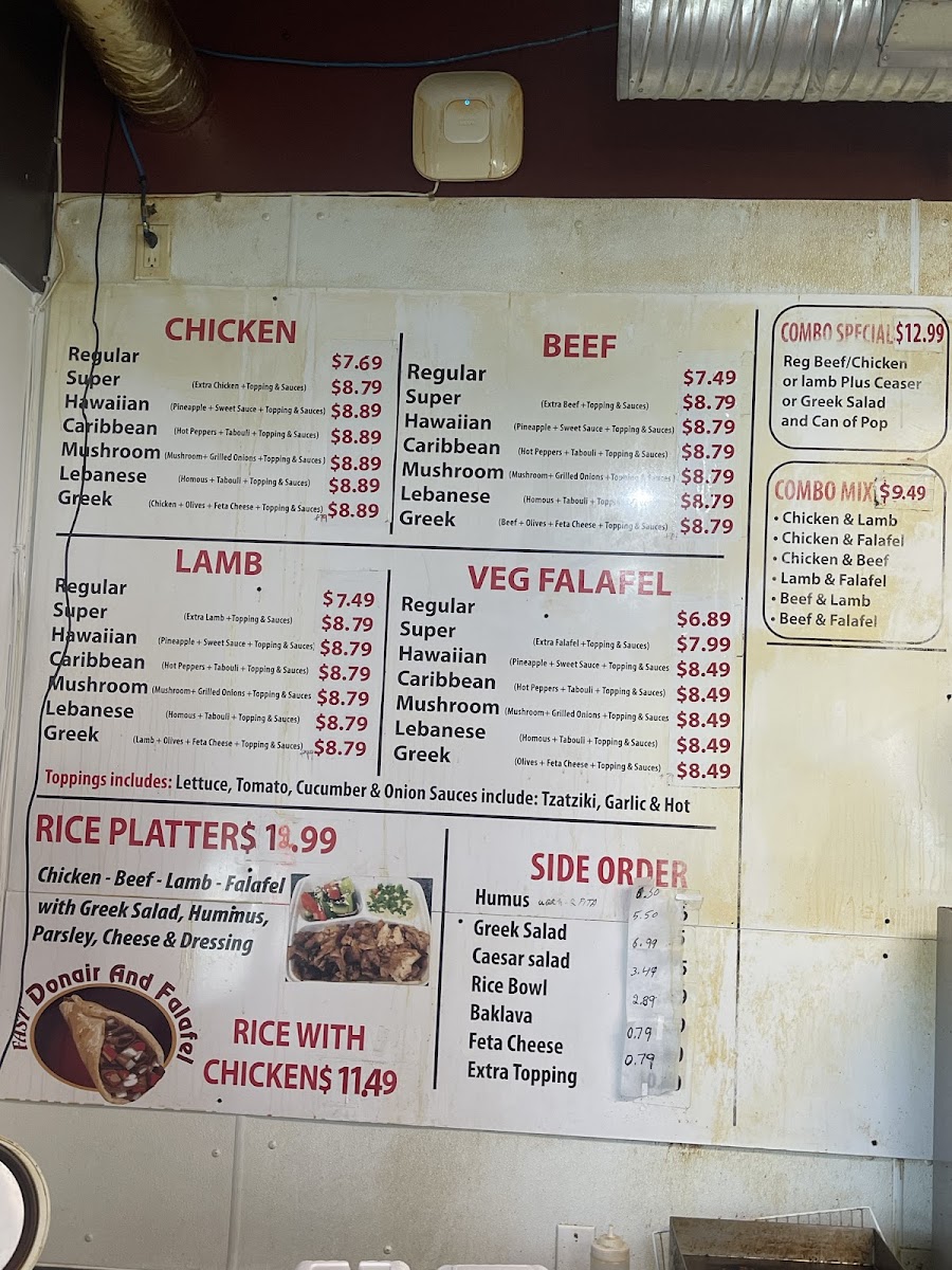 Fast Donair and Falafel Menu